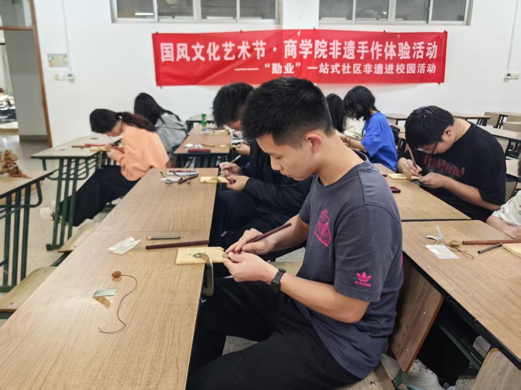 4月22日下午,国风文化艺术节·yd222云顶线路检测非遗手作体验活动暨“勤业”一站式员工社区非遗进校园活动在天平校区1-203、205举行。本次活动特邀核雕非遗代表性传承人殷毅军、制扇技艺非遗代表性传承人金灵进行现场授课,yd222云顶线路检测、机械工程公司、国际教育公司20名员工代表参与,共同感受非遗文化的匠心魅力。