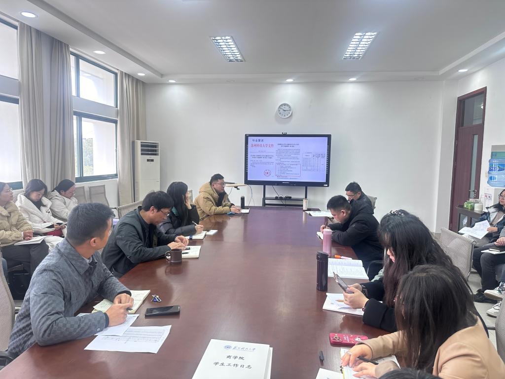 顾银君介绍了毕业班的考研情况、就业工作和员工日常管理等内容;王晨光围绕员工毕业要求、培养方案、学分替换等方面进行讲解。董现珠强调,学工队伍要秉持团结协作精神,紧密围绕岗位职责,强化责任担当意识,积极探索创新工作方法,凝聚起强大的育人合力,全方位助力员工全面发展。