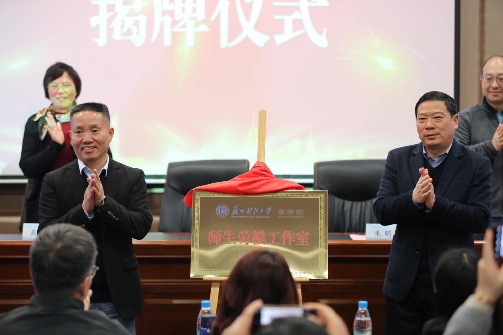 温波和朱明珠共同为工作室揭牌。吴惠芳和徐治初为王世文和张蔚颁发工作室导师聘任书。