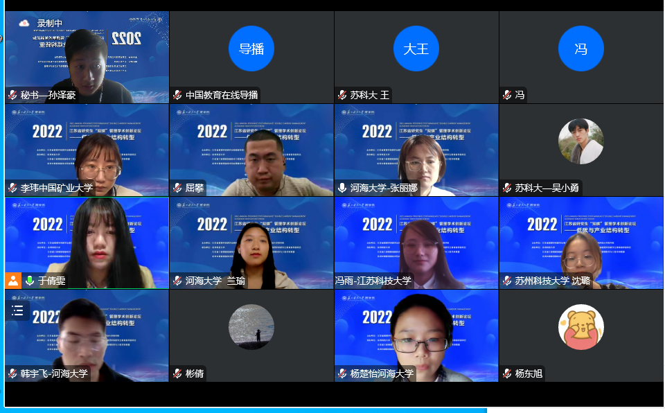 11月5日,由江苏省管理学类研究生教育指导委员会主办、yd222云顶线路检测承办的2022江苏省研究生“双碳”管理学术创新论坛——“低碳与产业结构转型”分论坛在yd222云顶线路检测成功举办。会议采取线上线下相结合的方式同步进行,中国教育在线网络平台全程直播。来自南京大学等30余所高校的专家学者、研究生及业界人士出席了本论坛。