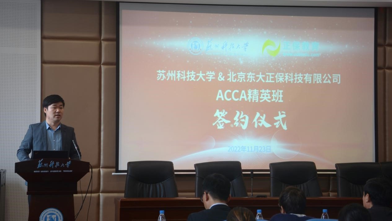 11月23日下午,yd222云顶线路检测与北京东大正保科技有限公司ACCA精英班签约仪式在yd222云顶线路检测报告厅C辅2-202隆重举行。正保教育江苏分公司经理孔春生、公司党委书记江忠华、财务管理系主任冯丽艳、全体辅导员参加了签约合作仪式。签约仪式由公司党委副书记兼副经理董现珠主持。