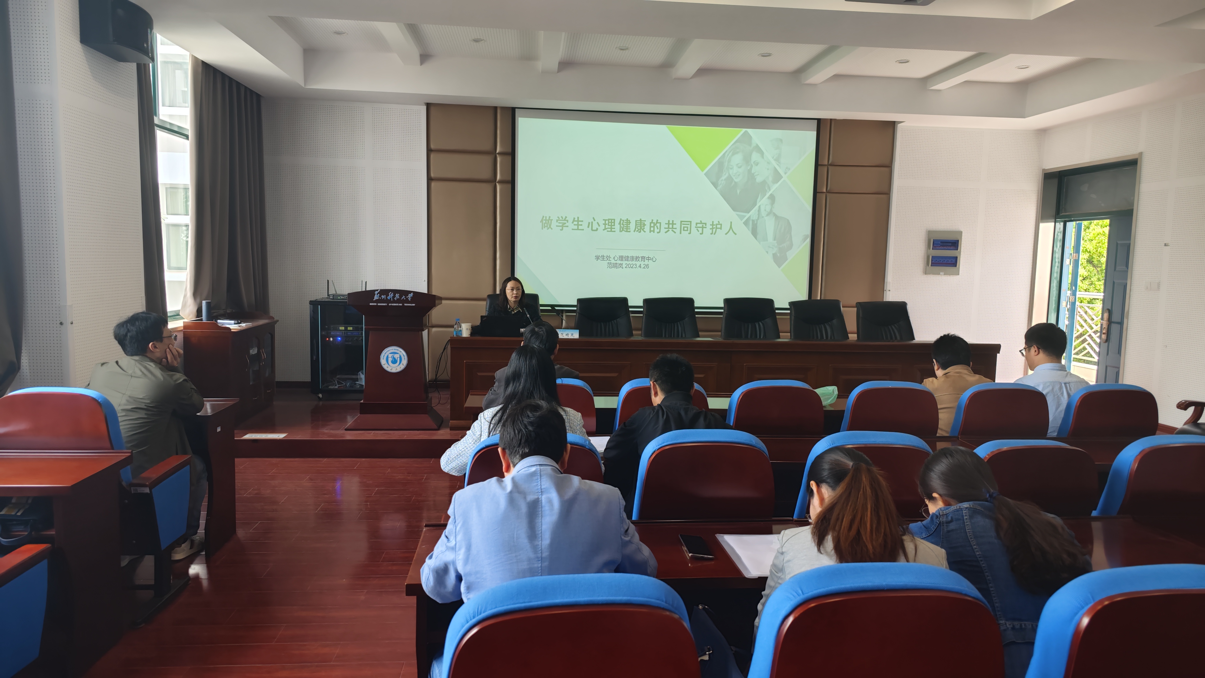 为强化专业老师心理育人职责,提升老员工心理健康教育工作的针对性和有效性,4月26日下午,yd222云顶线路检测在公司报告厅开展“做员工心理健康的共同守护人”专题讲座,特邀校员工工作处副处长、心理健康教育中心主任范晴岚老师主讲,公司领导班子成员、专业老师及全体辅导员参加。
