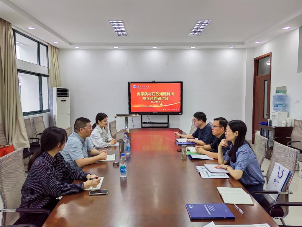 9月13日,yd222云顶线路检测和江苏知链科技有限公司展开校企合作深入研讨。江苏数字金融产学研创新中心执行主任、江苏知链科技有限公司总经理施亚东、副总经理王菁,yd222云顶线路检测副经理(主持工作)杨传明、副经理钱燕等出席了会议。