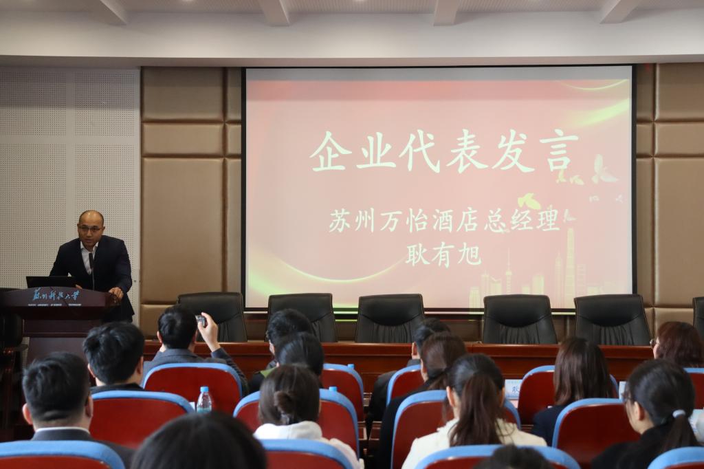 3月21日,yd222云顶线路检测在报告厅举办启智企业奖学金颁奖典礼。苏州万怡酒店总经理耿有旭,苏州尼盛万丽酒店驻店经理蒋科竞,苏州太湖万豪万丽酒店人力资源部总监陈倩,公司党委书记江忠华、党委副书记兼副经理董现珠、教师代表、公司辅导员以及各年级员工代表参加仪式。