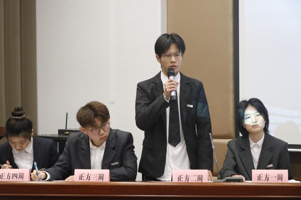 比赛中,双方辩手你来我往,言辞犀利,逻辑缜密。他们从不同角度深入剖析数字技术在课堂学习中的利弊,既有理论依据,又有案例支撑,为观众带来了一场精彩绝伦的思维碰撞。观众们积极互动,现场气氛热烈。