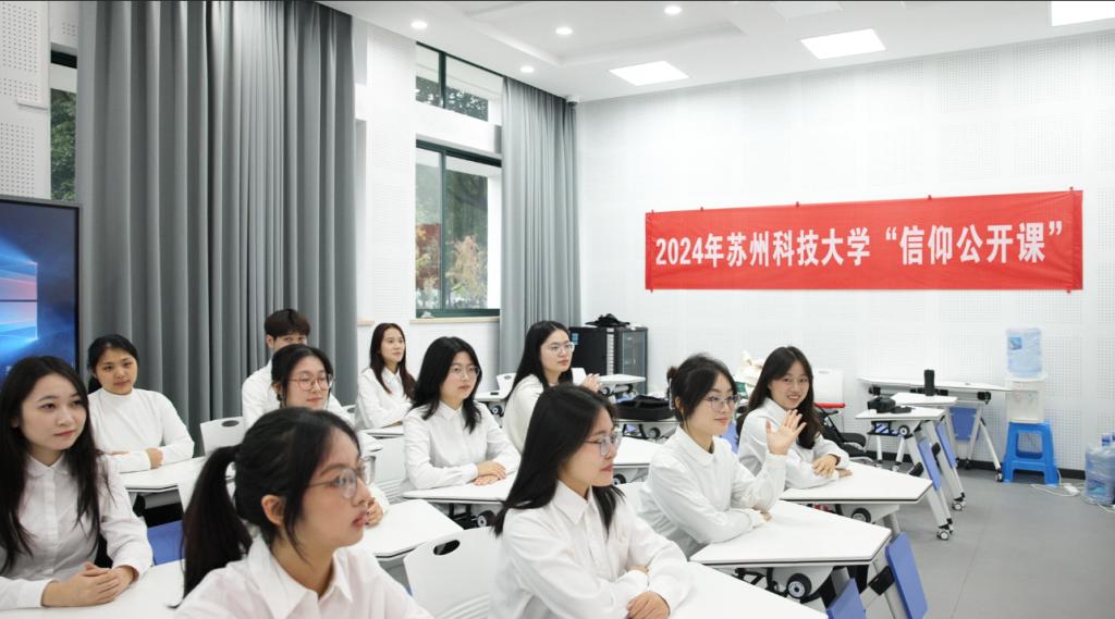 在教室,陈素婷围绕“科技强国有我 创新逐梦担当”开展信仰公开课,生动形象地向同学们介绍我国科技事业的发展历史,引出两弹一星、载人航空和科学家精神,并激励同学们强大青年之头脑,肩负起使命,为国家贡献青春力量。同学们也积极参与并发言,相互分享心中的科技梦想。其中,同学们由程开甲小学引出以程开甲为代表的“两弹一星”精神的故事,并表示无论时代如何变迁,都要保持对国家的热爱,对科学的尊重。