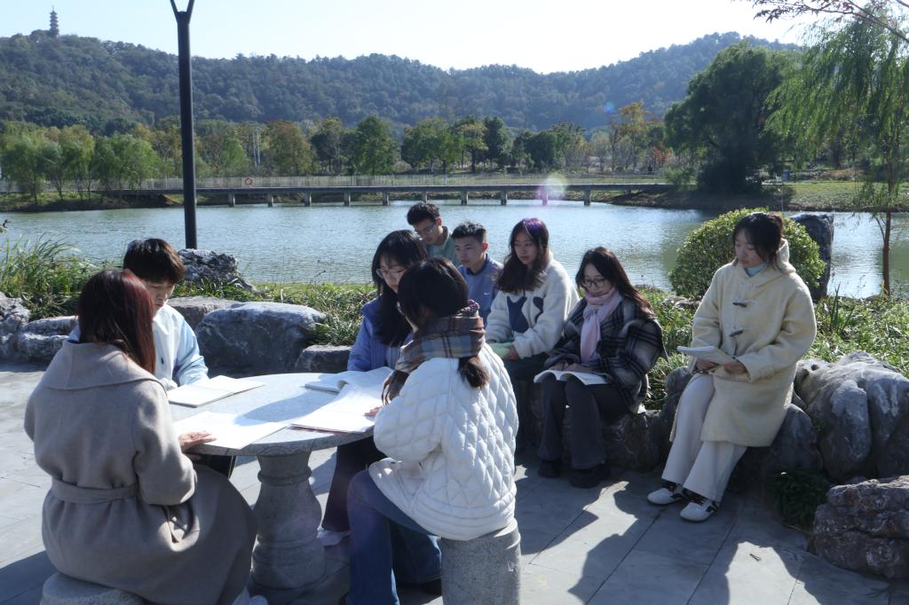 在湖心亭,同学们围绕“载人航天”精神开展户外读书分享会,主讲同学和分享同学畅所欲言,深刻感悟作为新时代老员工,要弘扬航天精神,不畏艰难,勇于创新。