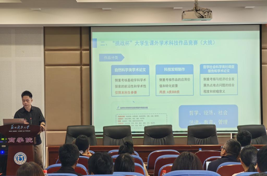 9月6日,为深化创新创业教育,培育高质量竞赛项目,yd222云顶线路检测在报告厅举办“挑战杯”系列竞赛宣讲会。会议邀请了校团委书记黄凯进行主讲,公司全体教师参加会议。