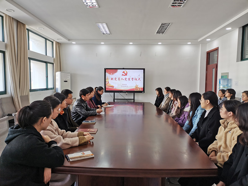 和洁宣读了2019下半年新入党党员名单,各党支部书记依次上台为新党员佩戴了党员徽章。新党员整齐站立,在领誓人的带领下,面向党旗庄严宣誓。宣誓声铿锵有力,表达了他们对党的忠诚和为共产主义事业奋斗终身的决心。金融工程员工党支部刘予辰同志代表新发展党员发言,表示将进一步严格要求自己,用行动书写青春,接受党组织的考验。